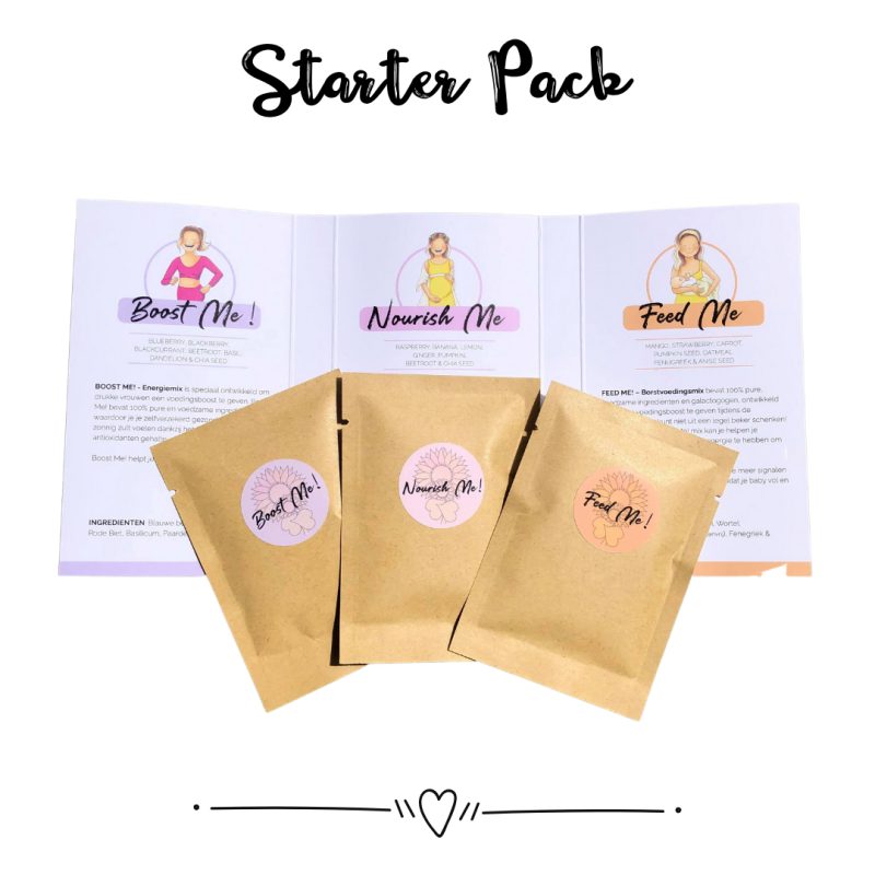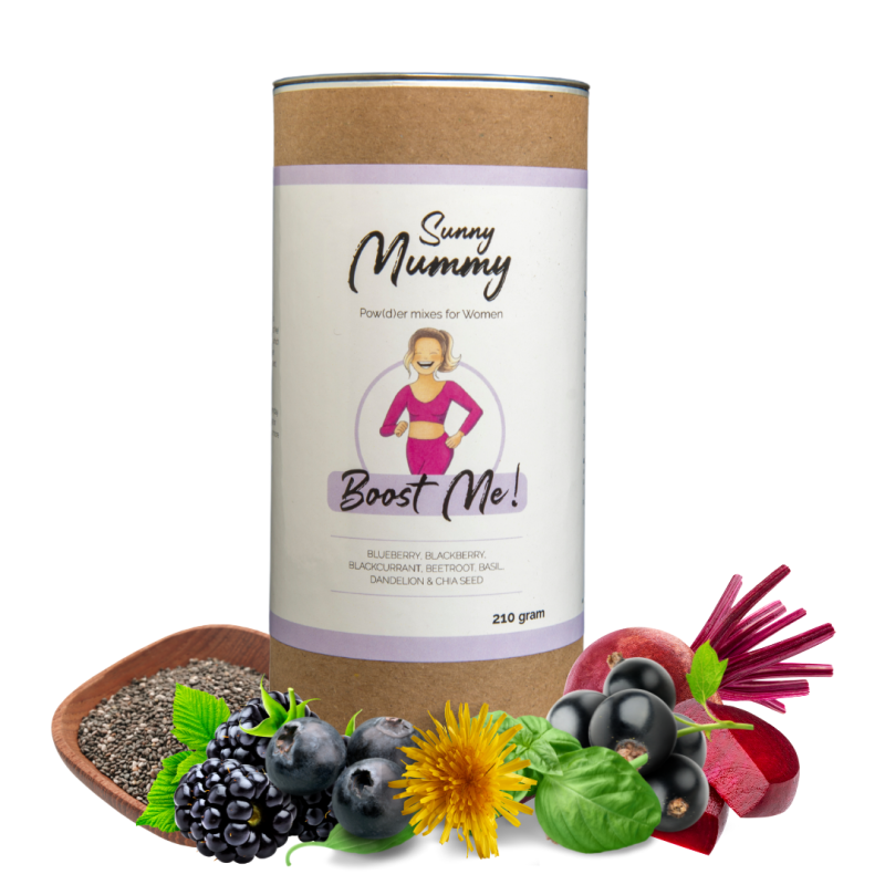 - Nourish Me! een mix die ondersteuning biedt tijdens en na de zwangerschap. De mix zit boordevol 100% natuurlijke vitamines en mineralen, waaronder foliumzuur, ontstekingsremmers, vitamine C, ijzer en magnesium. Deze zijn zowel tijden de zwangerschap als na (herstel na de bevalling) belangrijk.