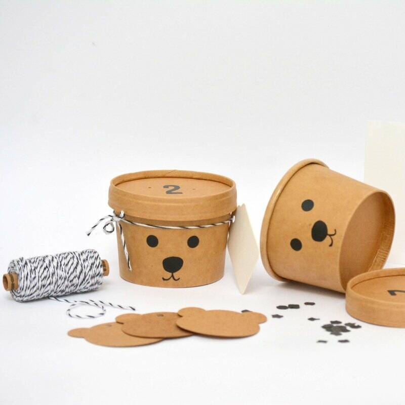- Watervaste stift of glasstift (zwart), je kan ook kiezen voor kant en klare stikkers (voor de oogjes en mond : https://www.suzyb.nu/traktatiestickers-beer.html)