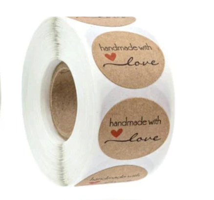 Om er echt een 'cadeautje' van te maken heb ik op Ali-expres enkele leuke artikelen gescoord : zoals licht vale zakjes met stippen en stikkers met 'handmade erop' om de zakjes dicht te pakken.