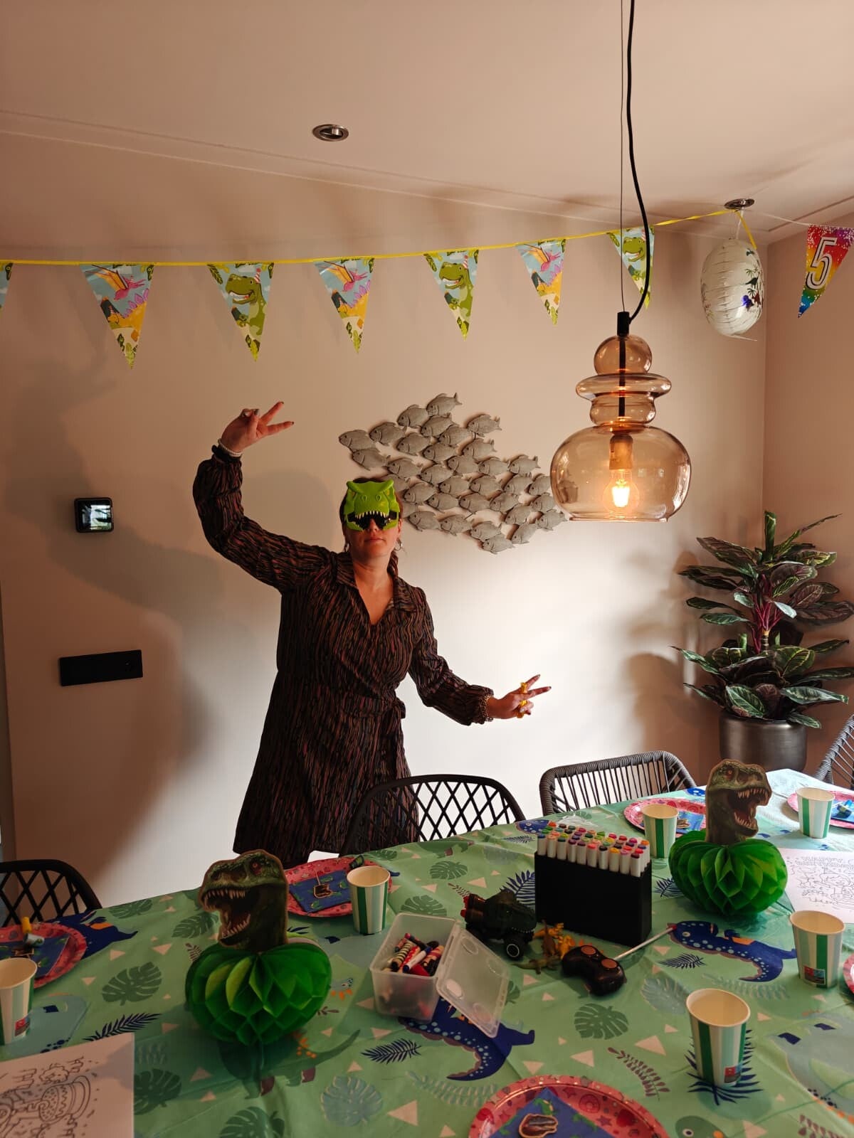 En dan de vraag, houden we het feestje thuis en gaan we daar allemaal leuke spelletjes doen en knutselen of gaan we toch buiten de deur een feestje vieren. Jeppe is jarig in de herfst dus het weer is altijd maar weer de vraag. Ik besluit daarom dat het een combinatie wordt tussen thuis en buiten de deur. Ik besluit om thuis te starten met een eigen gemaakte dino taart daarna een activiteit te plannen en vervolgens naar huis om gezamenlijk zelfgemaakte pannenkoeken te eten.