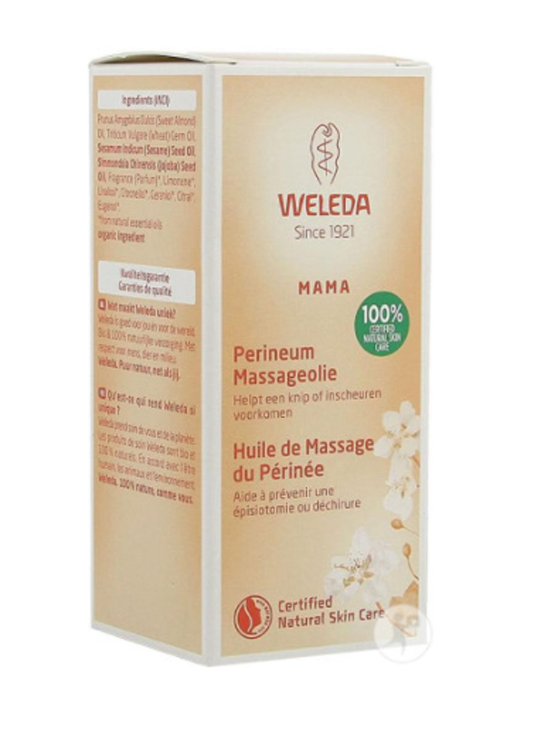 Op de Nederlandse verpakking staat: Helpt een knip of uitscheuren voorkomen. Nou als dat nou eens zou werken! Dit product hoort bij de lijn van Weleda : Zwangerschap en Kraamserie die bestaat uit Natuurlijke verzorgingsproducten voor moeder en kind.